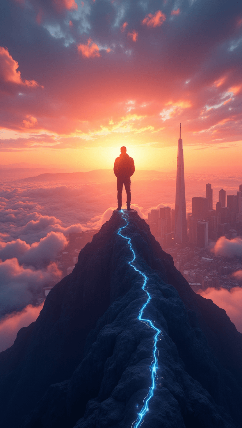 Begin your Bay Area AI adventure with this dynamic image of a young techie ready to climb the ladder of success—capture the hustle and ambition driving innovation in 2025!